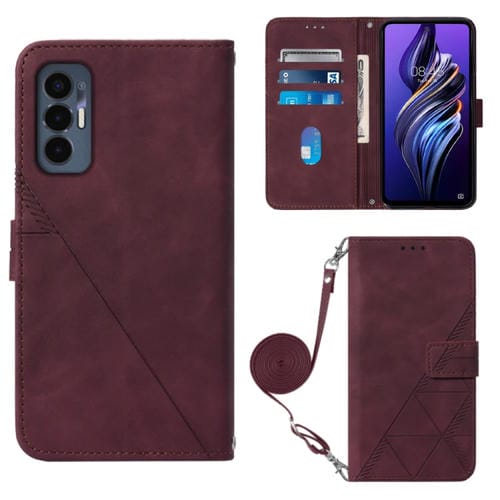Funda de Cuero Flip para Tecno Pova 3 Le7 Crossbody 3D En Relieve (Rojo Vino)