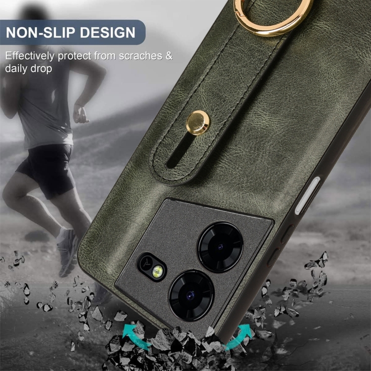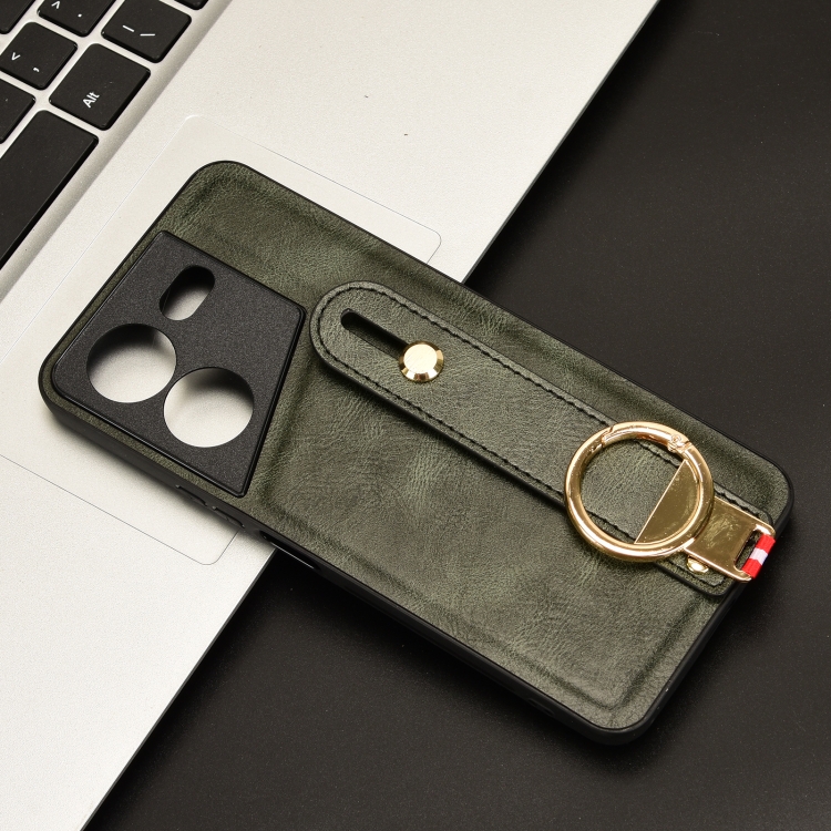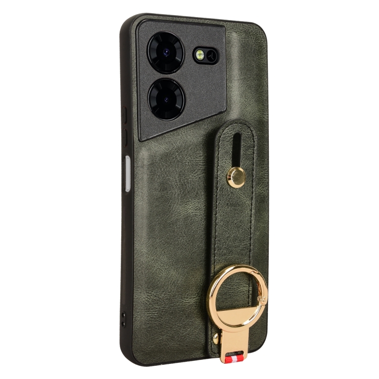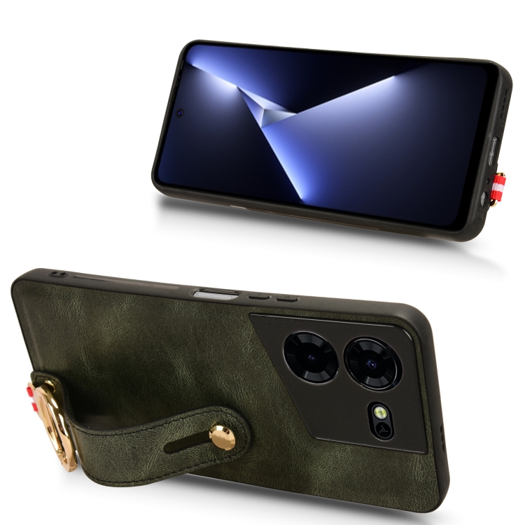 Funda Trasera de Cuero para Tecno Pova 5 Pro con Pulsera (Verde)
