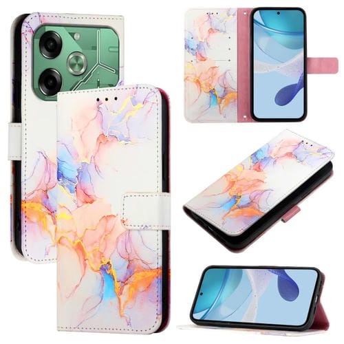 Funda de Cuero para Tecno Pova 6 4G Pt003 con Tapa y Patrón Mármol (Blanco)