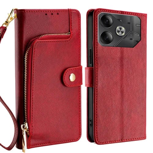 Funda de Cuero para Tecno Pova 6 5G con Bolsa y Cremallera (Rojo)