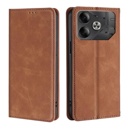 Funda de Cuero Magnética Tecno Pova 6 5G Skin Feel para Teléfono (Marrón Claro)