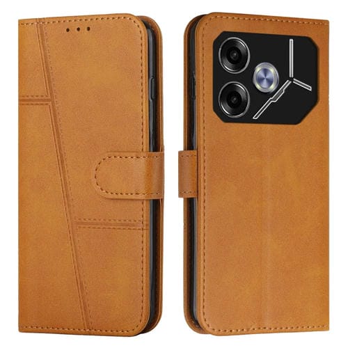Funda para Tecno Pova 6 de Cuero con Hebilla y Textura de Becerro (Amarillo)