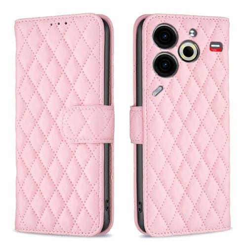 Funda de Cuero con Tapa para Tecno Pova 6 Neo Diamond Lattice (Rosa)