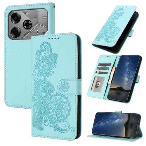 Funda de Cuero para Tecno Pova 6 Pro Datura Flower con Tapa en Relieve (Azul Claro)