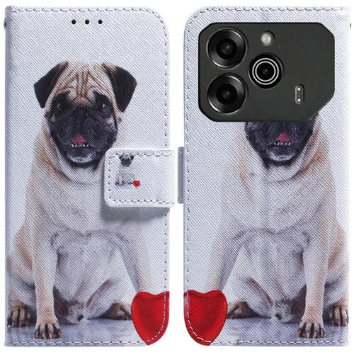 Funda de Cuero con Tapa para Tecno Pova 6 Pro y Pova 6 con Dibujo Pug