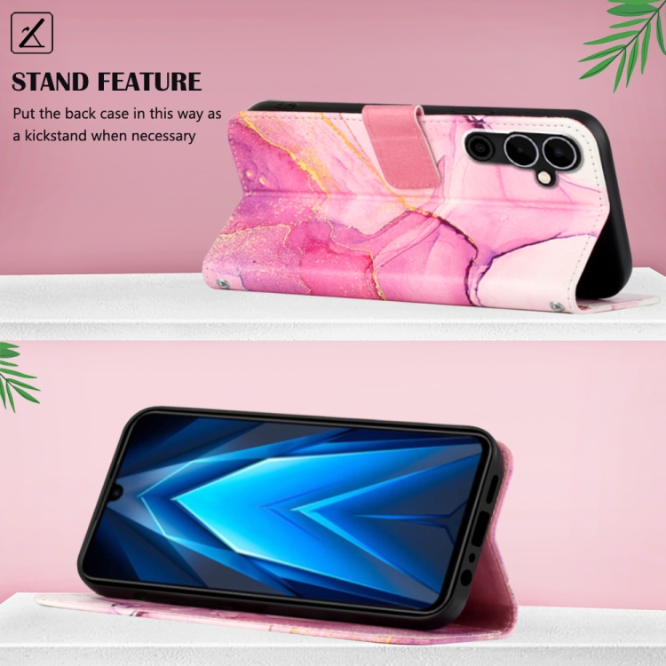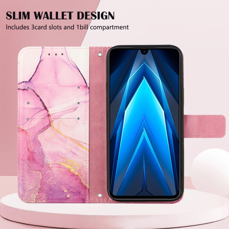 Funda Flip de Cuero para Tecno Pova Neo 2 Lg6N Pt003 con Patrón Mármol (Oro Rosa Púrpura)