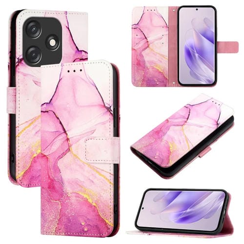Funda de Cuero para Tecno Spark 10C Pt003 con Tapa y Patrón Mármol (Rosa, Morado y Dorado)