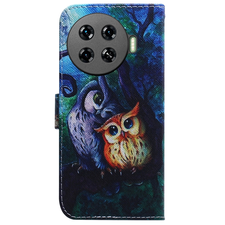 Funda de Cuero con Tapa para Tecno Spark 20 Pro+ 4G con Dibujo Coloreado (Búho de Pintura al Óleo)