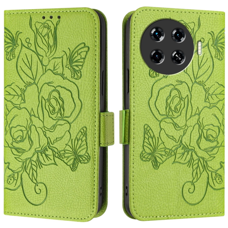Funda de Cuero Antirrobo RFID para Tecno Spark 20 Pro con Relieve Rosa (Verde)