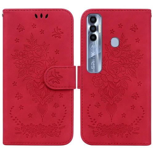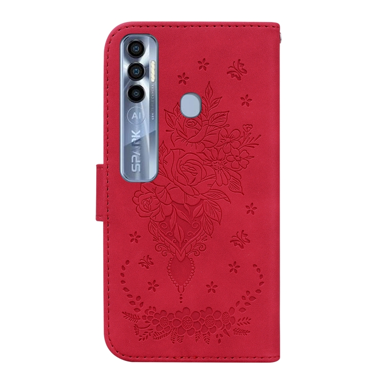 Funda para Tecno Spark 7 Pro Butterfly Rose Foothip en Relieve de Cuero (Rojo)