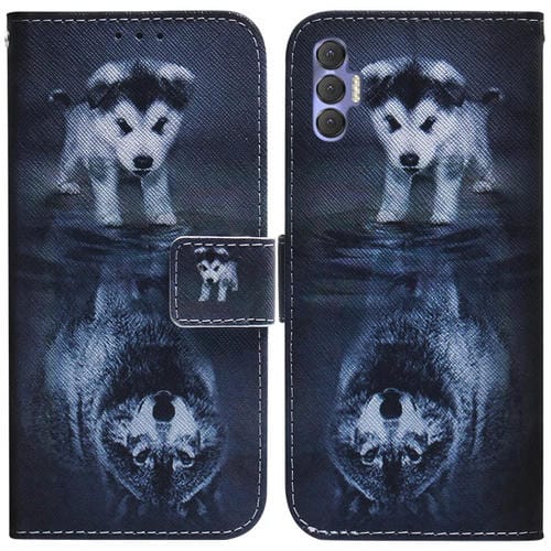 Funda de Cuero para Tecno Spark 8 Pro Colored Drawing (Wolf and Dog)