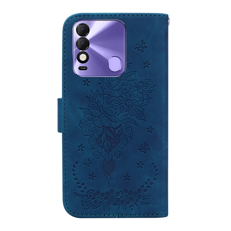 Funda para Tecno Spark 8 y Spark 8T Butterfly Rose en Cuero Relieve (Azul)