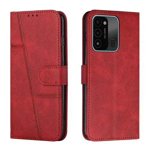Funda para Tecno Spark Go 2022 y Spark 8C con Costuras de Ternero y Hebilla de Cuero (Rojo)