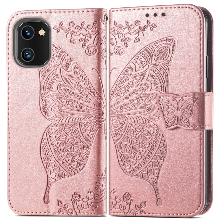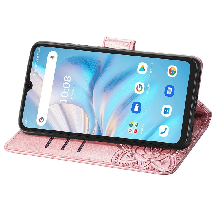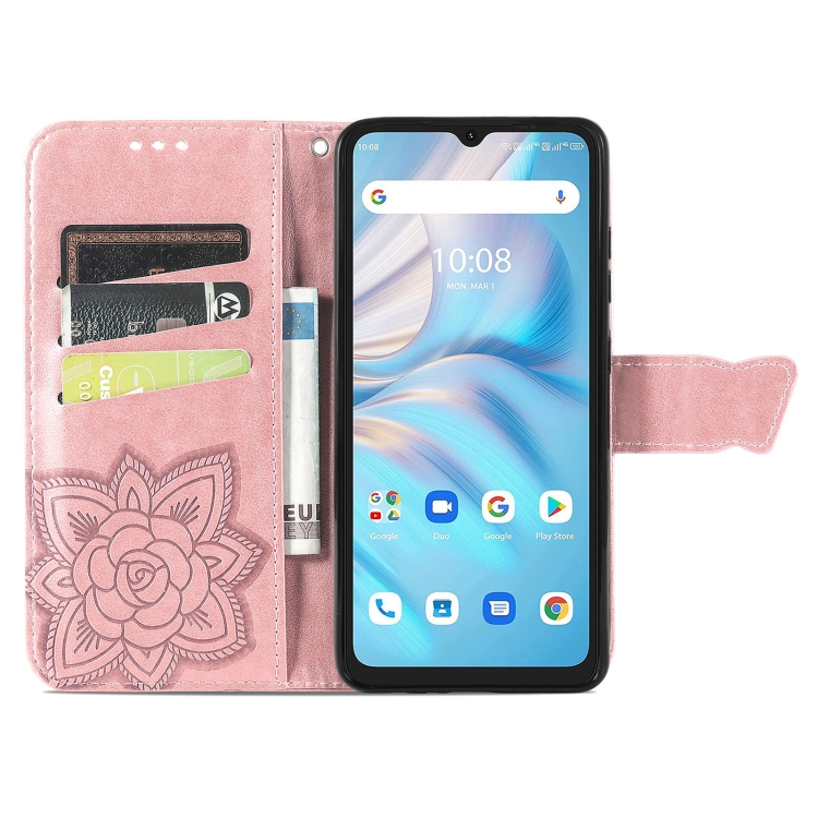 Estuche para Umidigi A13S Butterfly Love Flower en Cuero En Relieve (Oro Rosa)