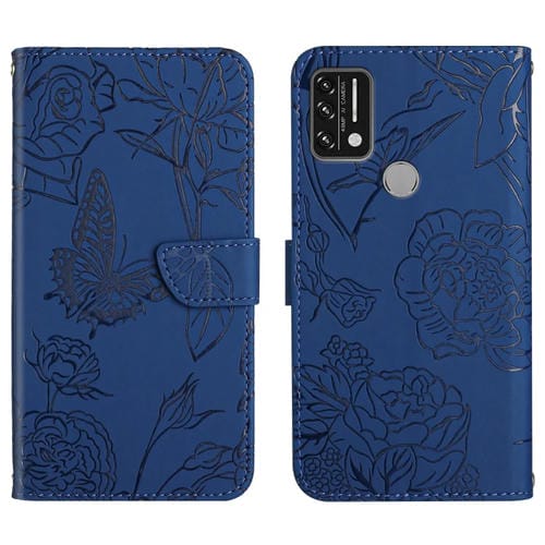 Funda de Cuero En Relieve para Umidigi A7 Siente Peonía Mariposa (Azul)