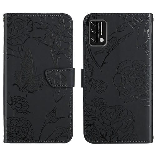 Funda de Cuero En Relieve Peonía y Mariposa para Umidigi A7S (Negro)