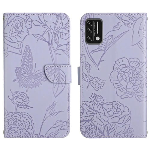 Funda de Cuero En Relieve para Umidigi A7S Siente la Piel Mariposa Peony (Púrpura)