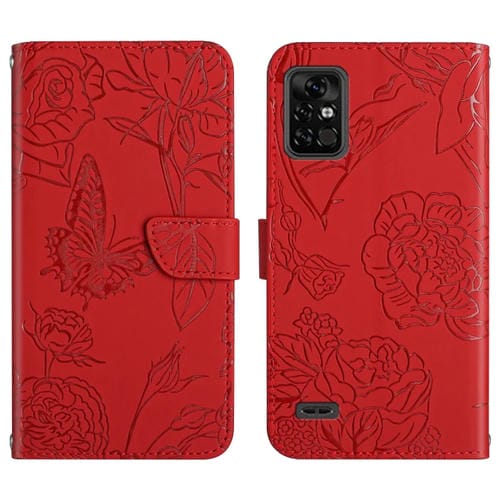 Funda Telefónica Umidigi Bison Pro Cuero En Relieve Mariposa Peony (Rojo)