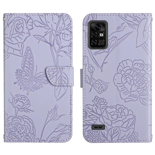 Funda de Cuero Umidigi Bison Pro en Relieve Peonía y Mariposa (Púrpura)