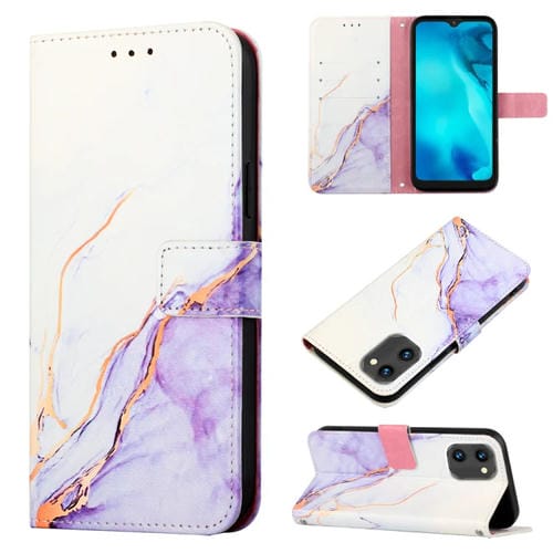 Funda Flip de Cuero para Umidigi C1 Pt003 con Patrón Mármol (Blanco Púrpura)
