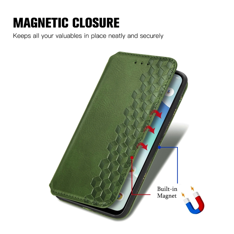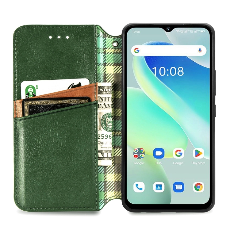 Funda para Umidigi G5 Cubic Grid de Cuero Magnético Prensado (Verde)