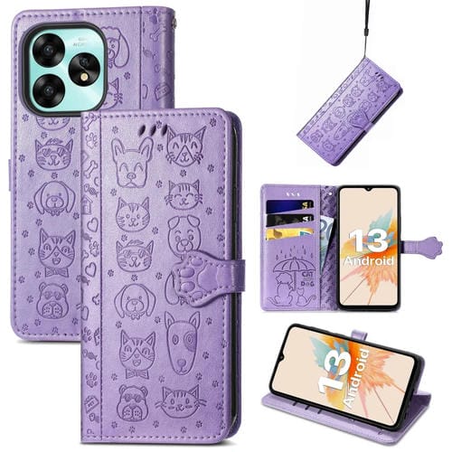 Funda para Teléfono Umidigi G5 / G5A Cuero Relieve Perros y Gatos (Púrpura)