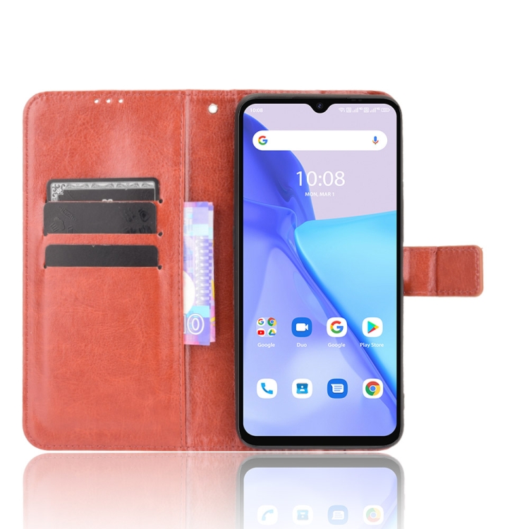 Funda Flip de Cuero Umidigi Power 5 Crazy Horse Textura Horizontal con Soporte y Ranuras para Tarjetas (Marrón)