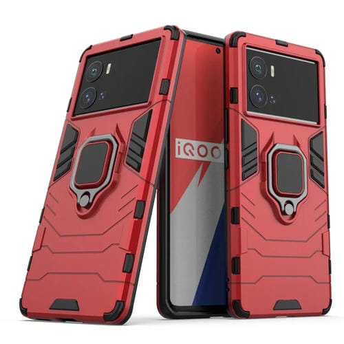 Para Vivo Iqoo 9 Pro 5G Funda Protectora a Prueba de Golpes PC + TPU con Soporte de Anillo Magnético (Rojo)