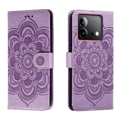 Para Vivo Iqoo Neo8 Sun Mandala Funda de Cuero para Teléfono con Patrón En Relieve (Púrpura)