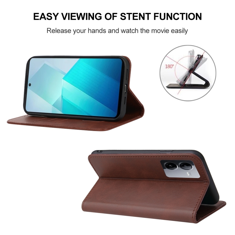 Para Vivo Iqoo Z8X Funda de Cuero para Teléfono con Cierre Magnético (Marrón)