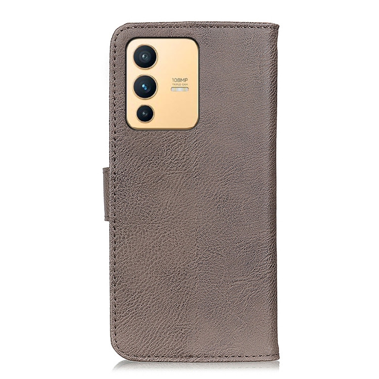Para Vivo S12 / V23 5G Khazneh Textura de Piel de Vaca Phonecasa de Cuero (Caqui)