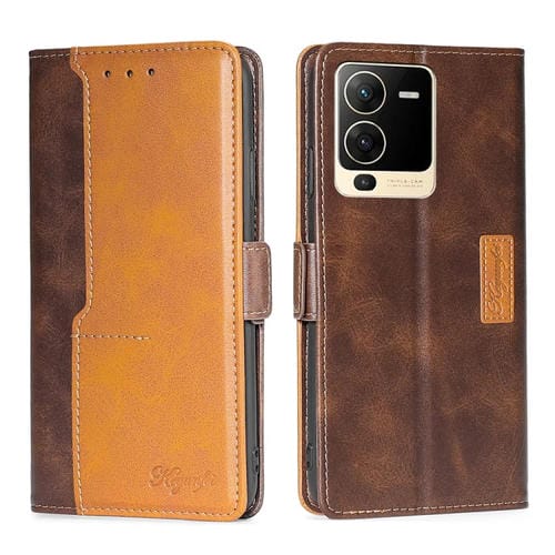 Para Vivo S15 5G Contrast Color Side Buckle Leather Case (Marrón Oscuro + Dorado)