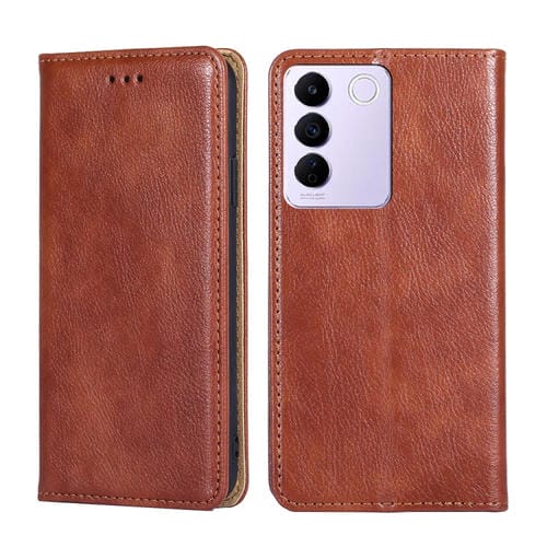 Para Vivo S16E Estuche para Teléfono de Cuero Magnético de Color Sólido con Aceite Brillante (Marrón)