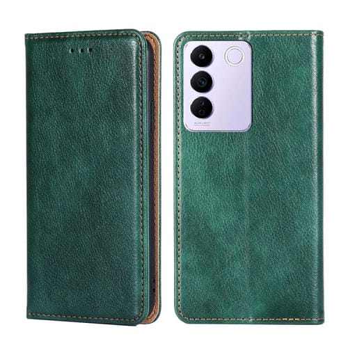 Para Vivo S16E Estuche para Teléfono de Cuero Magnético de Color Sólido con Aceite Brillante (Verde)