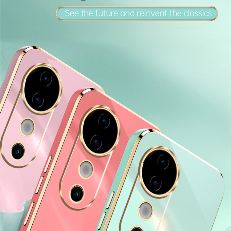 Para Vivo S19 Xinli Caja de Teléfono de TPU con Borde Dorado y Revestimiento Recto 6D (Rojo Espino)
