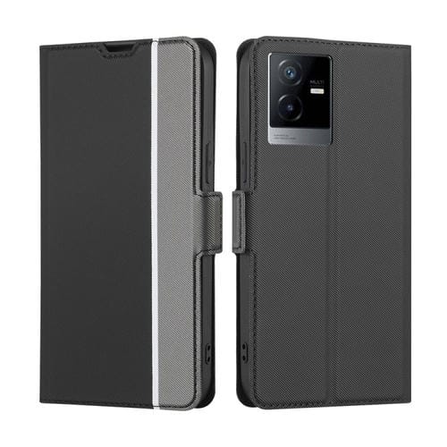 Para Vivo T2X 5G/Y73T/Iqoo Z6X Textura de Sarga Hebilla Lateral Funda de Cuero para Teléfono (Negro)