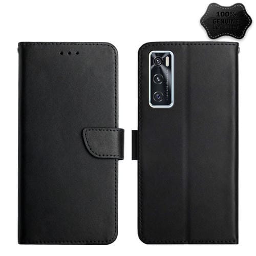Para Vivo V20 Se / Y70 Funda de Teléfono de Cuero Genuino a Prueba de Huellas Dactilares (Negro)