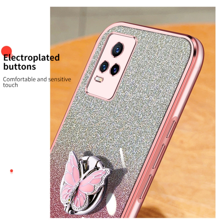 Para Vivo V21E 4G / Y73 4G 2021 Estuche para Teléfono de TPU con Soporte de Mariposa con Brillo Degradado Plateado (Negro)