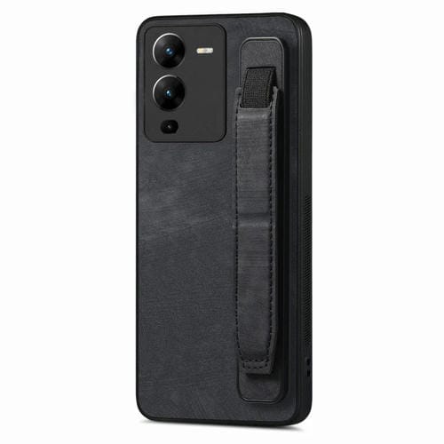 Para Vivo V25 Pro Retro Muñequera Funda Trasera de Cuero para Teléfono (Negro)