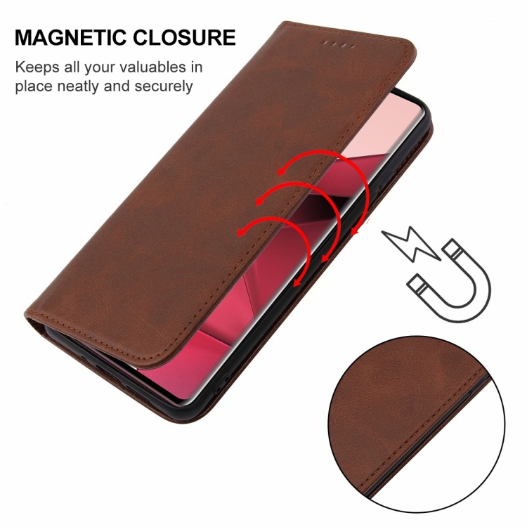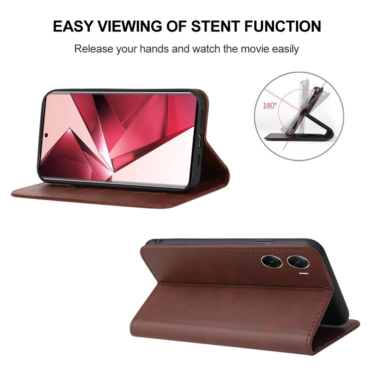 Para Vivo V29E Funda de Cuero para Teléfono con Cierre Magnético (Marrón)