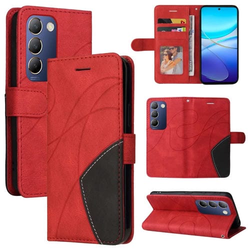 Para Vivo V40 Se 5G / Y100 Idn Funda para Teléfono de Cuero con Tapa y Empalme de Dos Colores (Rojo)