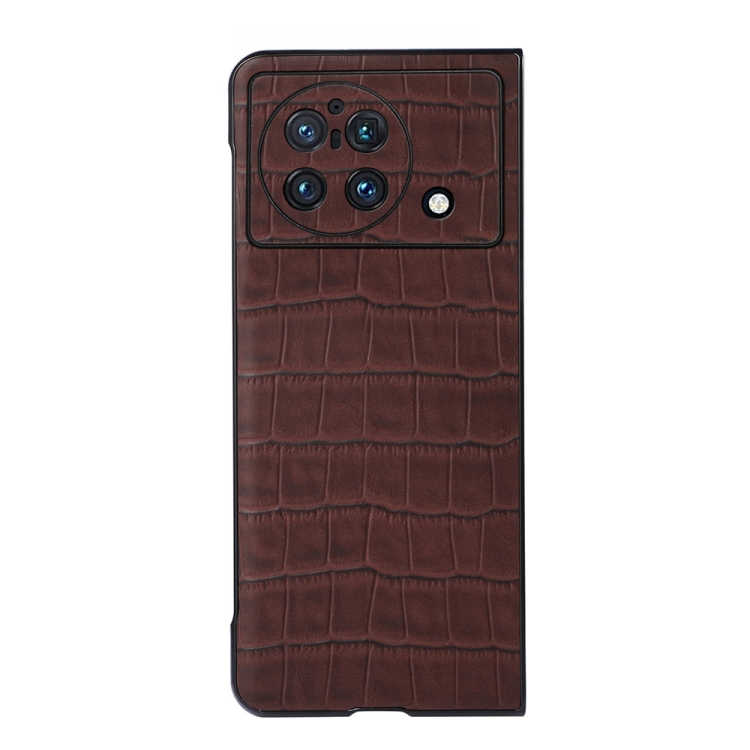 Para Vivo X Doble Accione Agujero Textura de Cocodrilo Caja de Cuero Genuino (Marrón)