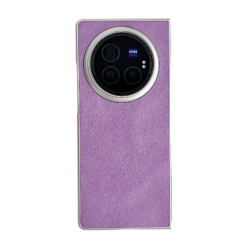 Para Vivo X Fold3 Pro Skin Feel Textura de Cuero Pintura Nacarada Funda para Teléfono a Prueba de Golpes (Púrpura)