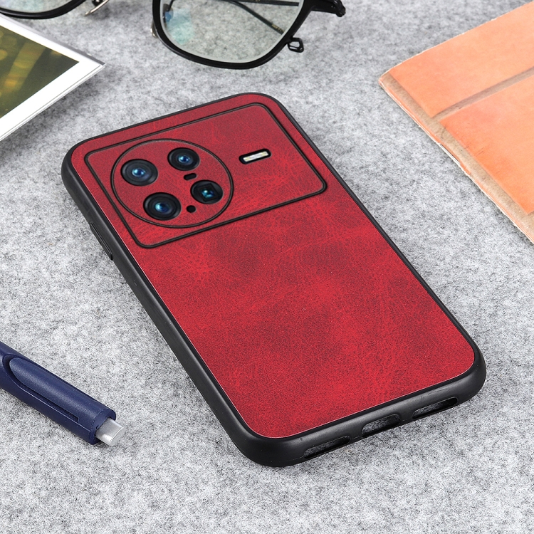 Para Vivo X Nota Ajuste Exputo Agujo Textura de Berca de Dos Colores de Pus Teléfono de Pu (Rojo)
