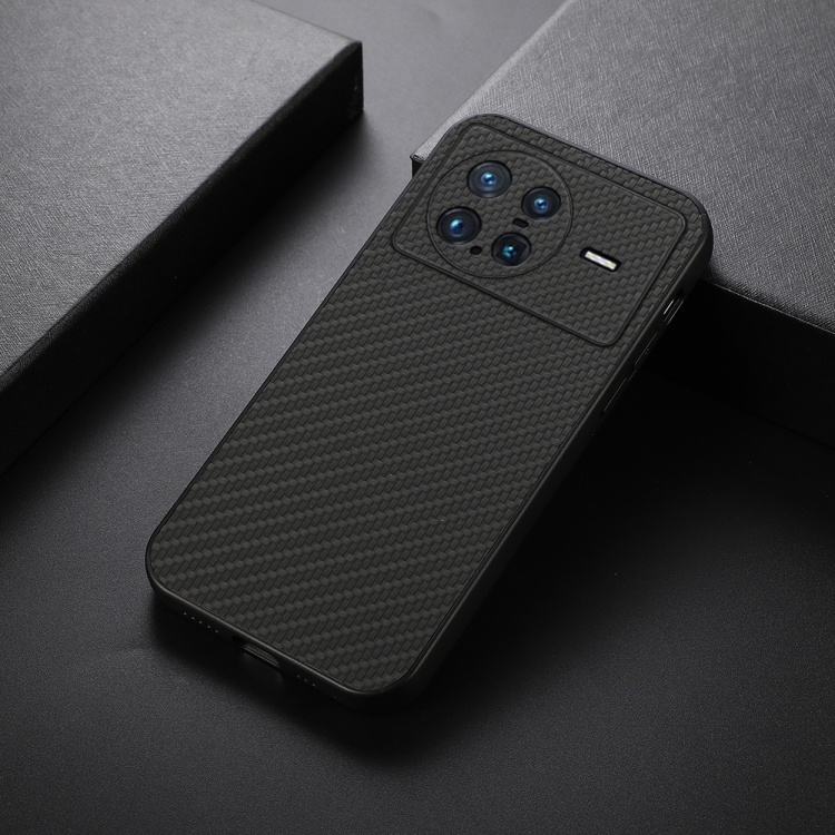 Para Vivo X Nota Excuente Fibra de Fibra de Carbono Agujero Exacto Caja Telefónica de Pu (Negro)