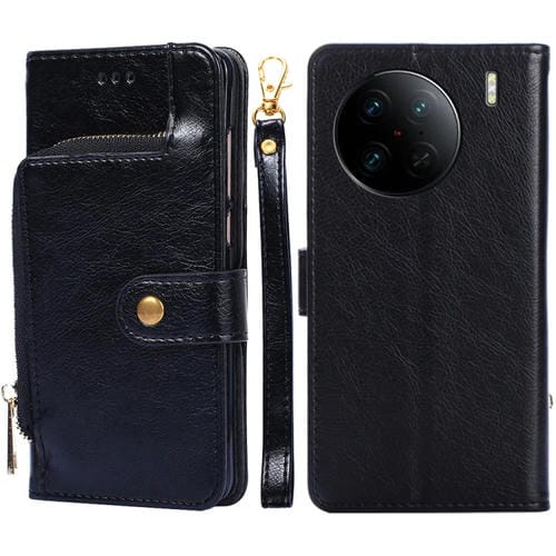 Para Vivo X90 Pro + Funda de Cuero con Cremallera para Teléfono (Negro)