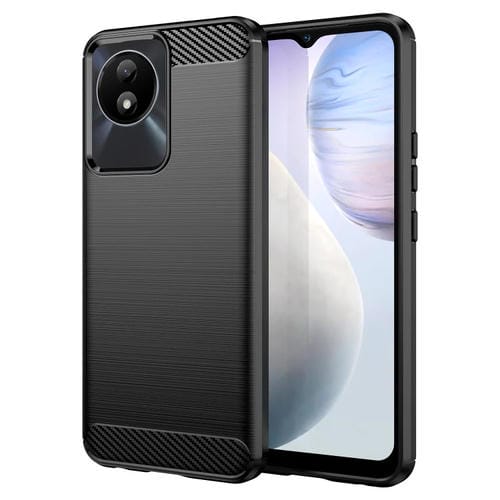 Para Vivo Y02 4G Caja del Teléfono TPU de Fibra de Carbono con Textura Cepillada (Negro)