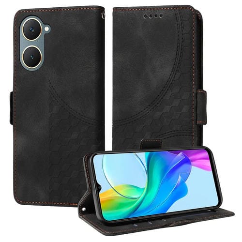 Para Vivo Y03 4G / Y18 / Y18E Funda para Teléfono de Cuero Estrellado con Rombos En Relieve (Negro)