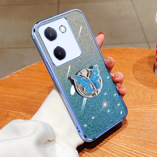 Para Vivo Y100 5G Estuche para Teléfono de TPU con Soporte de Mariposa con Brillo Degradado Plateado (Azul Sierra)