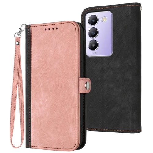 Para Vivo Y100 5G Idn / Y200E 5G Funda de Cuero para Teléfono con Hebilla Lateral Global y Correa de Mano con Doble Pliegue (Rosa)